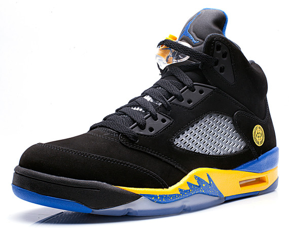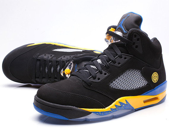 Black Laney 5s It has been quite the year for the Air Jordan 5. The "Doernbecher" release caused quite the frenzy and sneakerheads are anxiously waiting to hear more about these Air Jordan 5 "Shanghai". When images first surfaced of this Air Jordan 5 many were quick to dub it the "Black Laney". It sports a simmilar color scheme while replacing the upper with black. Only 3,000 pairs will be released to the public. Make sure you click through all the images above and let us know if these 5's are on your wish list.