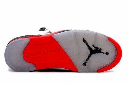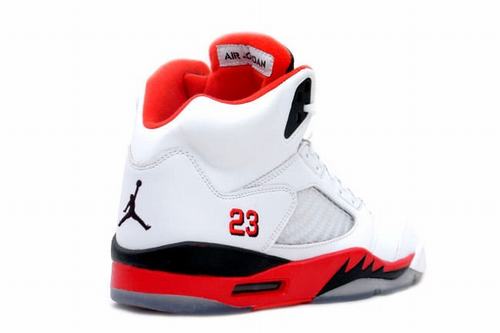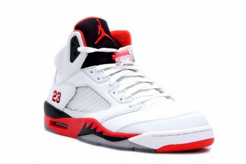 The Air Jordan 5 (V) Retro Fire Red ( White / Fire Red / Black ) 136027-162 was released in December 2006. They are a bit different from the Retro Fire Reds released in 2000, as they don’t feature an all black midsole, but instead a combination of red and black, with a white toe, and a clear outsole. They also feature a "3″ stitched into the heel of the shoe, as well as the Jumpman logo at the back.