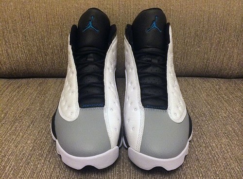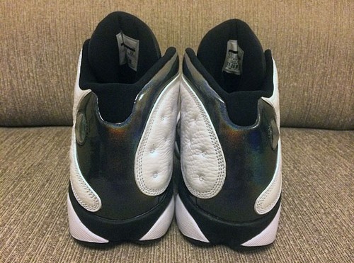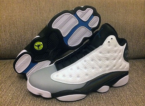 Jordan Brand will later release a new colorway of Air Jordan 13 models-- Air Jordan 13 Barons which is also called Jordan 13 Hologram. Barons is the name gave by sneaker enthusiasts to those sneakers who have the colorway of white, black and wolf grey, though it is irrelevant to Birmingham Barons. The Air Jordan 13 Barons has a upper made from a White tumbled leather, a Black textured leather and smooth Grey leather and the midsole is covered with a kind of iridescent synthetic leather. This Barons colorway make the sneaker clean and crisp, and I am looking forward to seeing it.