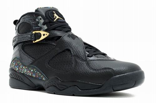 Champion Kit | Air Jordan 8 "Championship Pack" contains two pairs of black and white color of the Air Jordan 8 shoes, all with gold as a decorative embellishment, the use of white and gold decoration, and will join Jordan's fingerprint shoe body design, the white version of the Air Jordan 8 "Champion Pack" upper cortex and different from the past, with a white leather with a little reflective effect of the building, near the bottom is golden frame element as a decorative black is added in a similar color heel fireworks pattern. The title suit is to commemorate Michael Jordan led the Bulls win third NBA championship.