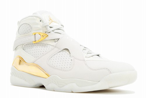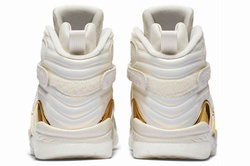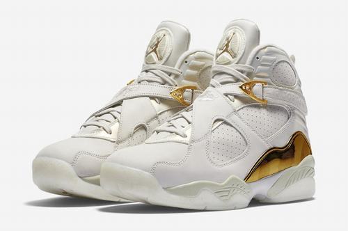 Champion Kit | Air Jordan 8 "Championship Pack" contains two pairs of black and white color of the Air Jordan 8 shoes, all with gold as a decorative embellishment, the use of white and gold decoration, and will join Jordan's fingerprint shoe body design, the white version of the Air Jordan 8 "Champion Pack" upper cortex and different from the past, with a white leather with a little reflective effect of the building, near the bottom is golden frame element as a decorative black is added in a similar color heel fireworks pattern. The title suit is to commemorate Michael Jordan led the Bulls win third NBA championship.