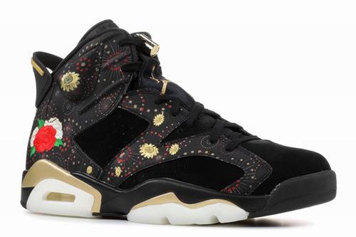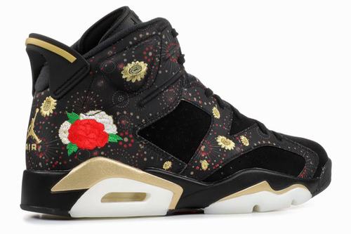 This Air Jordan 6 will feature a Black, Multicolor, Summit White and Metallic Gold color combination. Looking closer you can see that they feature a Black base with Gold, White and Red floral throughout. In addition we have fireworks across the panels, Metallic Gold accents while a translucent outsole completes the look.