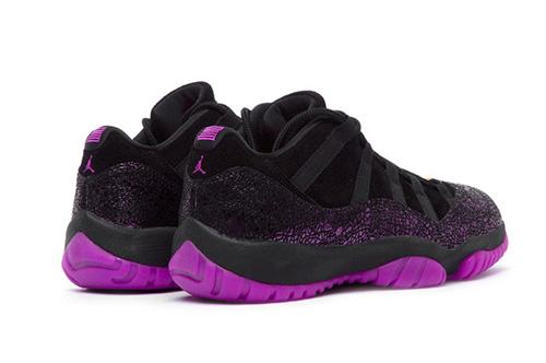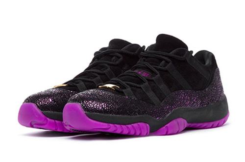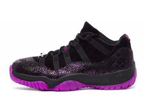 This low-top Air Jordan 11 features a Black suede upper highlighted with a textured