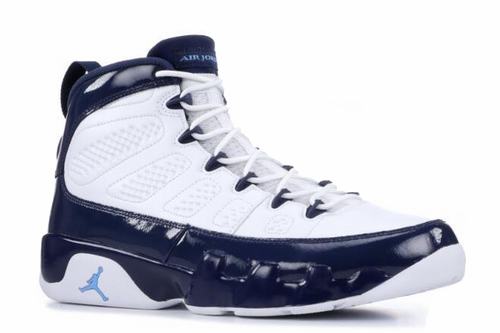 The classic Air Jordan 9 "UNC" is slightly different from the style of 17 years ago. This Air Jordan 9 has become a high-end model and added a lot of details. Air Jordan 9 "UNC" wraps white leather upper with midnight blue lacquer fabric, while "UNC" North Carolina Blue element is ingeniously applied to logo position of midsole, tongue, insole and heel with delicate care.