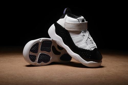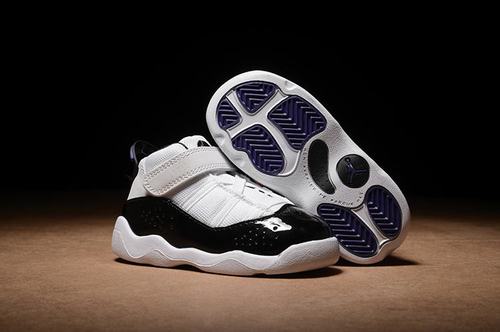 JORDAN 6 Rings is a collection of the characteristics of the shoes of Michael Jordan in the three consecutive championships, in which the cylindrical buckle on the laces, the handle on the back of the shoes, from the Air Jordan 6; The venting hole layout is from Air Jordan 7; the towel material JUMPMAN LOGO on the tongue, the design of the magic cross of the fixed cross strap, from Air Jordan8; the layout of the upper fabric and the patent leather part, from the classic AirJordan11; embroidery TWO 3 on the tongue, cheap jordans for kids and the small JUMPMAN LOGO on the last row of shoelaces, with the shadow of AirJordan 12; the leopard claw outsole from AirJordan13; the AirJordanlogo on the tongue is taken from AirJordan 14. The configuration uses a front and rear AIR air cushion, which has a good foot feel.