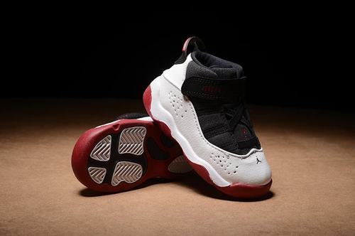 JORDAN 6 Rings is a collection of the characteristics of the shoes of Michael Jordan in the three consecutive championships, in which the cylindrical buckle on the laces, the handle on the back of the shoes, from the Air Jordan 6; The venting hole layout is from Air Jordan 7; the towel material JUMPMAN LOGO on the tongue, the design of the magic cross of the fixed cross strap, from Air Jordan8; the layout of the upper fabric and the patent leather part, from the classic AirJordan11; embroidery TWO 3 on the tongue, cheap jordans for kids and the small JUMPMAN LOGO on the last row of shoelaces, with the shadow of AirJordan 12; the leopard claw outsole from AirJordan13; the AirJordanlogo on the tongue is taken from AirJordan 14. The configuration uses a front and rear AIR air cushion, which has a good foot feel.