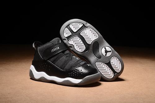 JORDAN 6 Rings is a collection of the characteristics of the shoes of Michael Jordan in the three consecutive championships, in which the cylindrical buckle on the laces, the handle on the back of the shoes, from the Air Jordan 6; The venting hole layout is from Air Jordan 7; the towel material JUMPMAN LOGO on the tongue, the design of the magic cross of the fixed cross strap, from Air Jordan8; the layout of the upper fabric and the patent leather part, from the classic AirJordan11; embroidery TWO 3 on the tongue, cheap jordans for kids and the small JUMPMAN LOGO on the last row of shoelaces, with the shadow of AirJordan 12; the leopard claw outsole from AirJordan13; the AirJordanlogo on the tongue is taken from AirJordan 14. The configuration uses a front and rear AIR air cushion, which has a good foot feel.