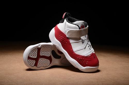JORDAN 6 Rings is a collection of the characteristics of the shoes of Michael Jordan in the three consecutive championships, in which the cylindrical buckle on the laces, the handle on the back of the shoes, from the Air Jordan 6; The venting hole layout is from Air Jordan 7; the towel material JUMPMAN LOGO on the tongue, the design of the magic cross of the fixed cross strap, from Air Jordan8; the layout of the upper fabric and the patent leather part, from the classic AirJordan11; embroidery TWO 3 on the tongue, cheap jordans for kids and the small JUMPMAN LOGO on the last row of shoelaces, with the shadow of AirJordan 12; the leopard claw outsole from AirJordan13; the AirJordanlogo on the tongue is taken from AirJordan 14. The configuration uses a front and rear AIR air cushion, which has a good foot feel.