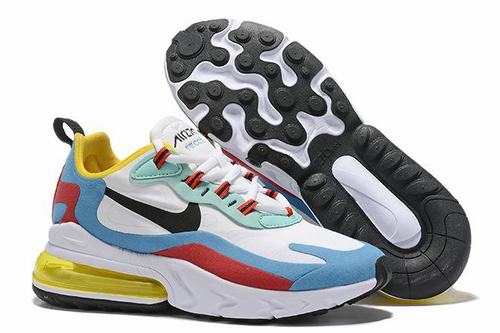 The initial release of the air max 270 react shoe is in line with tradition in art and design. Each kind of color matching deduces a unique artistic style or represents a certain movement with a unique color block and tone. Taking the main color matching as an example, it echoes the Bauhaus school's study of asymmetrical balance beauty, in order to commemorate the centenary of Bauhaus school. Other colors highlight geometric design styles, medieval color blocks and San Francisco's psychedelic style.