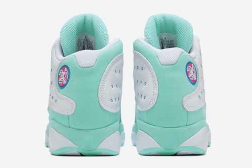 Just as its name is "Aurora green", the main color ornament of aurora is applied to the shoe body. The whole pair of shoes uses white as the background color, which is decorated with fresh color details. The upper is decorated with green, pink and blue dots, and the laces are made in the same way. The midsole, heel and tongue are all fresh mint green. Aj13's iconic position of cat's eye has changed from embroidery to have a different flavor. From blue to green to pink stitches on the panel, spotted laces and white midsole, perfect the design of the whole pair of shoes, fresh and elegant color matching, very suitable for summer wear.