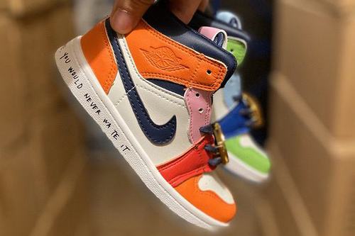 The Air Jordan I (1) kids shoe combines a dominant look, comfort and iconic shape that dominates the court. Air cushioning in the sole is designed for hardwood courts, with padded cuffs for ankle support.