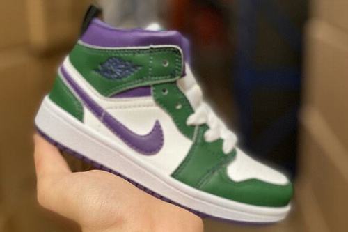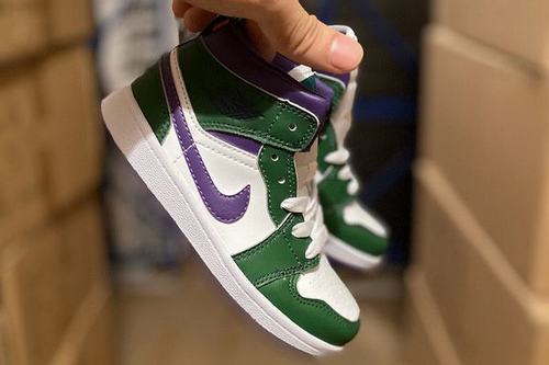 The Air Jordan I (1) kids shoe combines a dominant look, comfort and iconic shape that dominates the court. Air cushioning in the sole is designed for hardwood courts, with padded cuffs for ankle support.