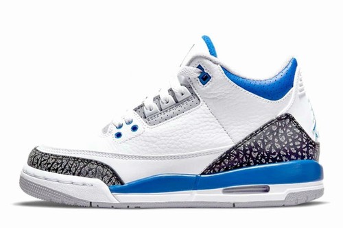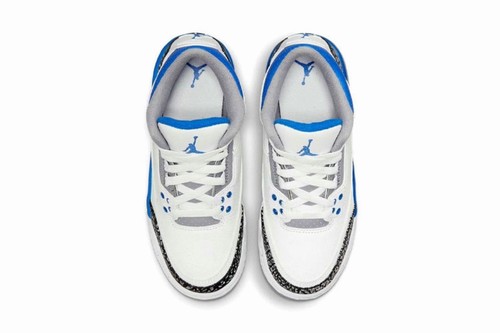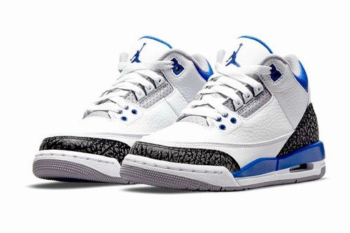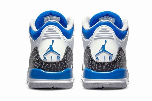 The toe and heel of the Air Jordan 3 Racer Blue are decorated with AJ3 classic style bursting prints, as well as the unique 3M reflective details, so that the shoes can reflect light even in dark environments; racing blue is integrated into this Air Jordan 3 Inject full vitality, creating a sporty aesthetic style full of summer flavor.