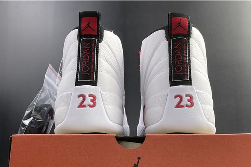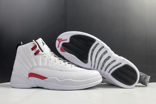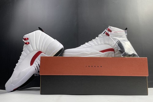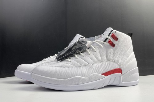 Air Jordan 12 Twist with white, red and black, white leather, and decorated with tongue, laces, mudguards and midsole. Silver decorative eyelets, black decorative tongue trademark and heel pull tongue, and equipped with white cheap jordans for sale rubber outsole, simple and generous.