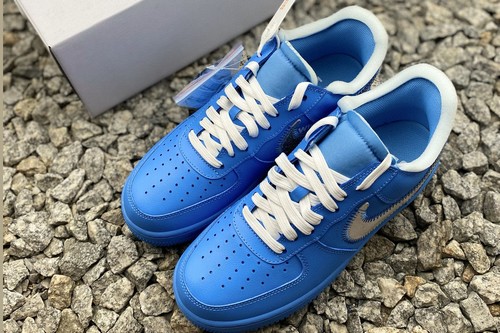 OW X Air Force 1 is a Blue shoe with a silver Swoosh. It is also known as THE TEN 3.0.