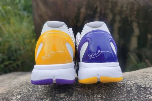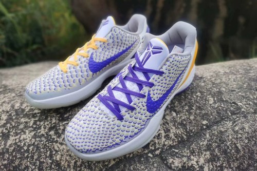 Zoom Kobe 6 Lakers is the first pair of Kobe Bryant to combine his nickname Black Mamba with his signature shoes, still by EricA Var. Zoom Kobe 6 uses a composite upper with a breathable mesh on the inside, Fly wire technology on the middle, and a polyurethane island structure on the outside to create a very realistic zigzad pattern. This three-layer vamp design provides greater protection and breathability. In the sole configuration with the front Zoom Air cushion and Phylon in the sole to ensure the cushioning of the cheap kobe shoes free shipping , although the thickness of the sole has decreased, but to low help design, but bring more light foot feeling and faster start. Wearing the ZK6, Bryant won the All-Star Game MVP award for the fourth time.