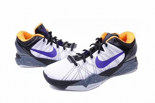Zoom Kobe 7 was launched in 2012. Zoom Kobe 7 uses the System design concept. EricA var provides two replaceable inner boots, which also allows players to make choices based on their own feelings. The midsole is equipped with Phylon and Zoom Air cushion units to provide excellent cushioning performance. At the same time, the low-top elastic shoe mouth design is adopted, so that the shoes can fit tightly to the ankle and provide better support. The upper still uses Fly wire technology to fit the instep. In addition, the design of the sneakers is inspired by Kobe's killer temperament, he is like a cheap kobe shoes for sale hunter on the court, and the ZK7 is his best weapon. The color of Zoom Kobe 7 Opening Day is based on the theme of the Lakers. The shoe body is composed of white, purple and yellow. It matches the color of the Lakers team uniform and echoes the theme.