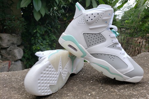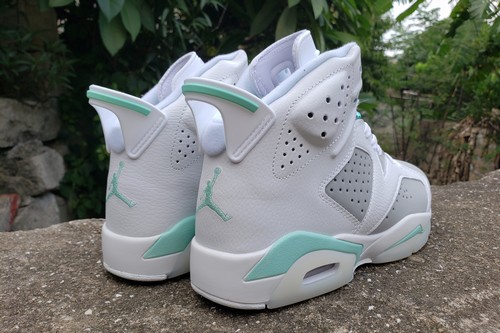 Air Jordan 6 WMNS Tiffany Blue uses white, pure platinum, and mint foam color scheme. This Air Jordan 6 is characterized by a pure platinum base and a white covering constructed in suede, matte, and a women cheap jordans online mixture of leather materials. The highlight of the shoes is the mint foam, which the Jordan brand calls "Tiffany Blue" on the lace locks, heels, midsoles and brand insoles. The translucent outsole completes the design.
