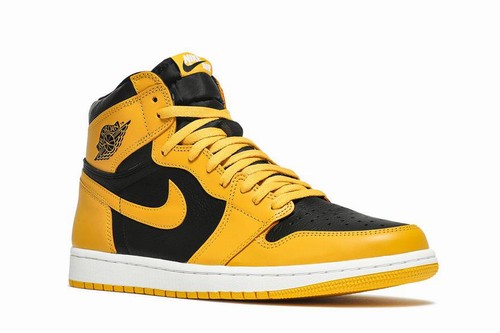 Emerging with a look similar to the'Iowa' Dunk from 1985, Air Jordan 1 High Retro OG "Pollen" movement familiar color block. This shoe is made of leather, with a black upper as the sole, in sharp contrast with the pollen, including the Swoosh brand. A nylon tongue supports the fit, like a doe perforation on a toe box. Under the foot, a white air midsole provides cushioning, giving a concentric rubber outsole traction.