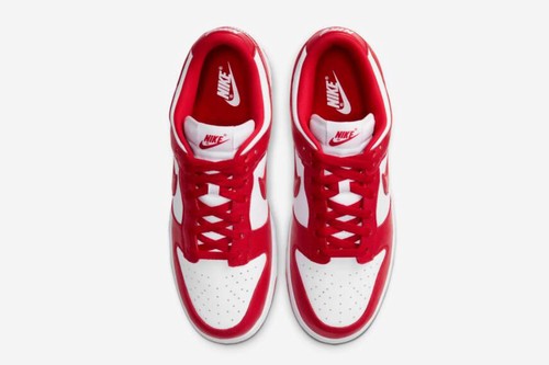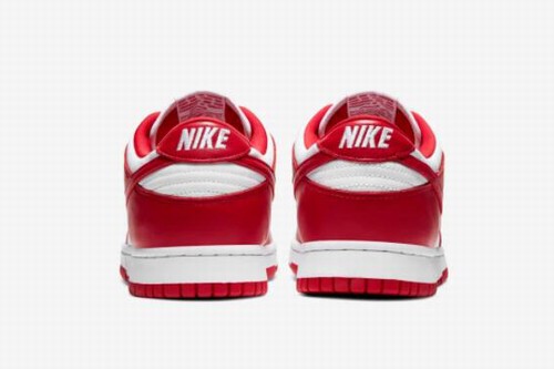Dunk Low Retro SP St. John's adopts the most classic white and University Red colors as a whole. Swoosh, shoelace eyelet strips, heel logo, insole logo and outsole are used for details. The upper is made of University Red leather and white tongue women cheap dunk shoes , Toe toe and other parts, keep its sharp contrast and neutral and refreshing clean appearance.