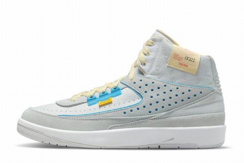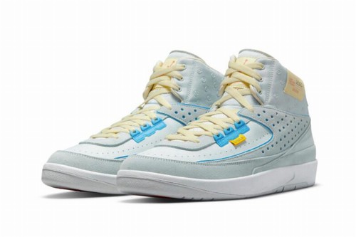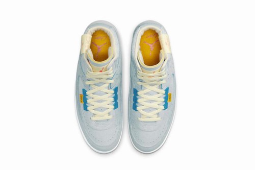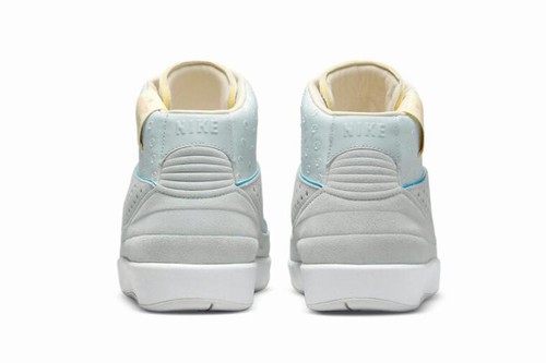 The new color matching of Union x Air Jordan joint shoes is based on AJ2. The overall color is composed of light gray and sky blue, with light yellow shoelaces, and the visual effect is retro and fashionable.
