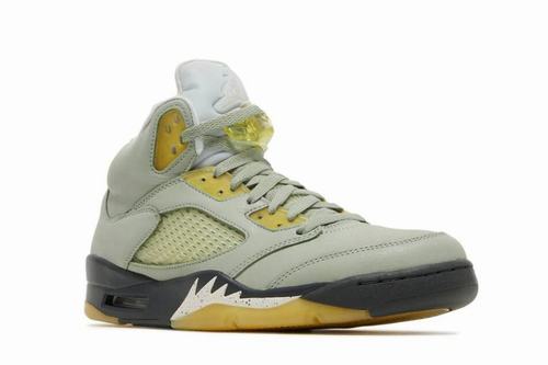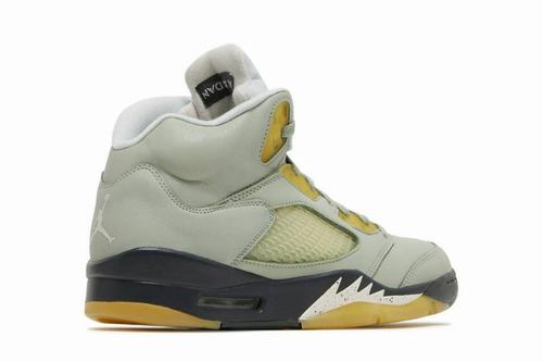 The Air Jordan 5 Retro Jade Horizon brings Tinker Hatfield's classic 1990 design to life in a muted colorway. The suede upper features a light green hue with translucent quarter-panel mesh and tonal TPU eyelets on the outside. The pink Jumpman logo stands out against the silver reflective tongue. The signature shark tooth detail on the cheap jordans for sale black polyurethane midsole is also finished in the same pink. Air cushioning can be seen at the heel, and the sole is icy translucent.