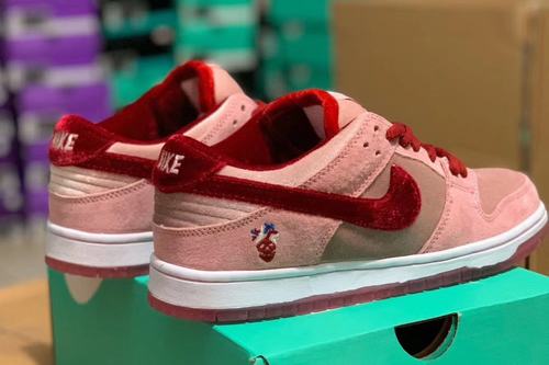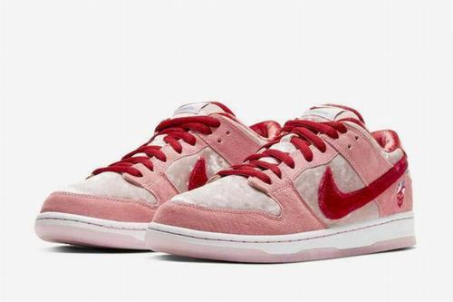 The whole pair of shoes is mainly made of very rare velvet material, supplemented by suede leather. The grey and red velvet on the toe cap, side body and upper position has a high-quality texture and a strong Valentine's Day atmosphere. The heel features the Strangelove group's grimace logo, also crafted with delicate embroidery. The inside of the insole is unique, with different graffiti decorations on the left and right feet, and the skeletons embracing each other are full of fun!