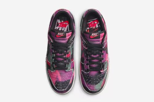 The new 'Graffiti' model features a canvas base covered in a graffiti-like speckled pattern with a mix of purple, pink, grey and black that extends to the tongue, and black laces, reflective Swoosh and rubber outsole complete the design; the cheap dunks online same Graffiti shapes are also presented on the insole. In addition, the laces, inner lining, Swoosh logo and outer outsole are made of black, which matches the overall color of the shoe. In addition, "Graffiti" will also be equipped with a special edition graffiti-style shoe box.