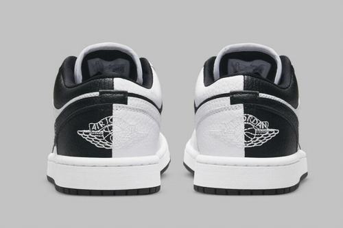 Air Jordan 1 Low Homage shoe body is filled with classic black and white color, spliced and segmented lychee leather upper. The whole body of the shoe is made of litchi material, and the quality performance continues to be of a high standard. Using black and white color splicing symmetrical design, the visual effect is quite amazing. The same elements are seen on the tongue stitch and the heel Wings logo, which cheap jordan shoes seen from the outside, has a white background with a black frame, reminiscent of the Panda Dunk Low look.