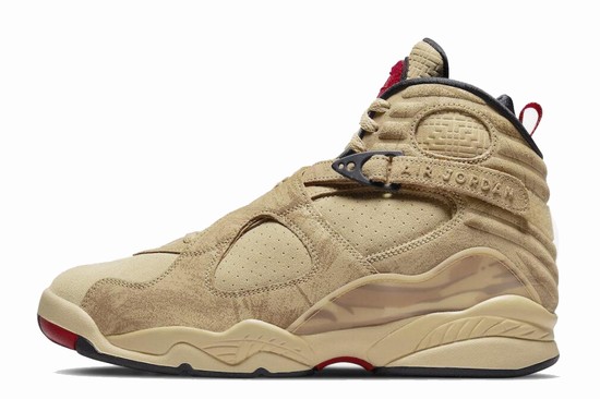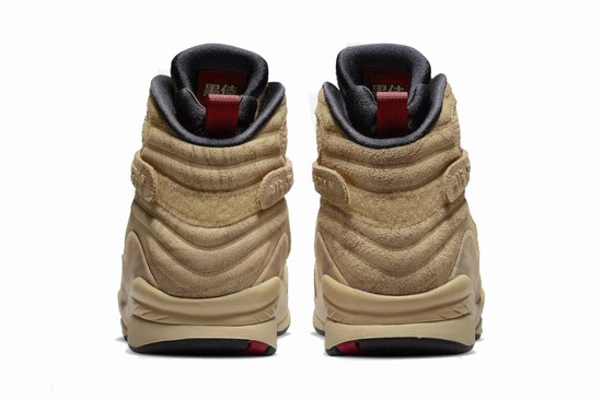 Air Jordan 8 Rui Hachimura shoe body texture level is quite rich, including suede, cracked leather and other materials. Shoe body is dressed up with wheat color, let a person associate the figure of tatami, bind the place to contain mottled dark grain, present a few minutes of Japanese department of primitive style. Tongue is interspersed with ethnic texture and red Yicura 塁 personal Logo, in addition to the above is interspersed with shake grain material, rich details of the shoe body. The inside of the cheap jordans shoes tongue is embroidered with the words "Black Shi", presenting a thick Style of Japanese samurai. Insole into Japanese style painting and basketball elements, it is worth mentioning that this is also matched with a special shoe box and exclusive lining paper, also full of Japanese and eight village 塁 elements, highlight high specifications.