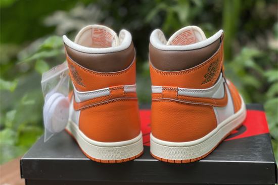 Air Jordan 1 High OG Starfish comes in a white, Starfish, Cocoa wow and sail color scheme. The Air Jordan 1 product is similar to the popular Shattered Backboard block and features a Sail base with an orange cladding and rubber outsole. Other cheap retro jordans details include exposed stitching with a black collar. Air Jordan 1 High OG Starfish Orange High Top basketball shoes. The matching color is white background color with orange frame and Swoosh, similar to AJ1 white button broken color. The shoe body is covered with leather shoe material. Please see the letters in the watermark picture when wearing the shoes.