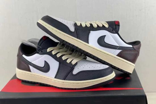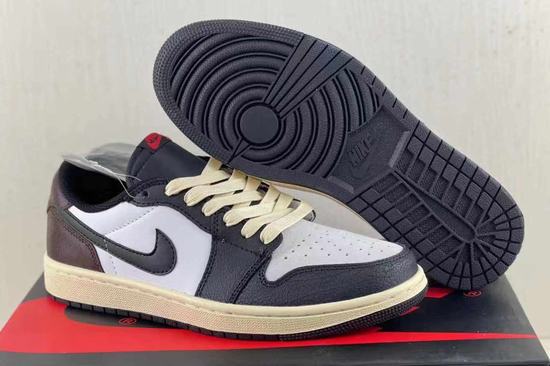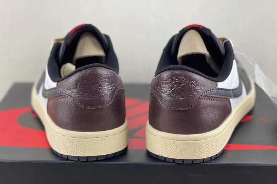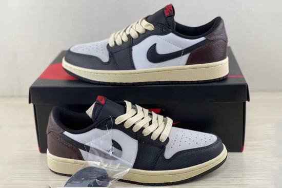 "AIR JORDAN Wings" logo on the heel. Air Jordan 1 Low OG Black Mocha body design The Low top frame is presented by white lychee leather, brown suede and Black form the base, with the heel and insole details, the visual effect is very outstanding.