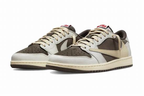 The TS X Air Jordan 1 Low OG Reverse Mocha features shoelaces, midsole and the signature Reverse hook on the outside in off-white to further accentuate the texture. The words of Cactus Jack brand on the inside, the face at the heel and the Logo embroidery of flying wings, highlight the joint identity together with the recognition of the full, and row face! Finally, a brown rubber outsole that echoes the color of the body completes the finish.