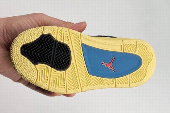 The Air Jordan 4 was designed with a combination of leather and nylon mesh. This design was very popular at the time. The main purpose was to reduce the weight of the shoe and improve the comfort of wearing. This shoe adds a fixing device extending from the upper to the upper, which is connected to the laces. The 4th generation still uses the air cushion with exposed rear palm and medium capacity, which was already the air cushion with the best shockproof effect at that time. The midsole configuration has not changed much, and the configuration of the front and rear separated soles is still maintained. The inside of the shoe is made of urabuck, a highly durable material. The mesh material, coupled with cheap jordans for kids  the obvious NIKE-AIR patented air cushion, makes the style of the three-quarter gang more evolved. The logo of the trapeze was transferred from the back of the shoe to the tongue, and all black was used as the main design of the sneaker, which changed the design concept of basketball shoes from then on.
