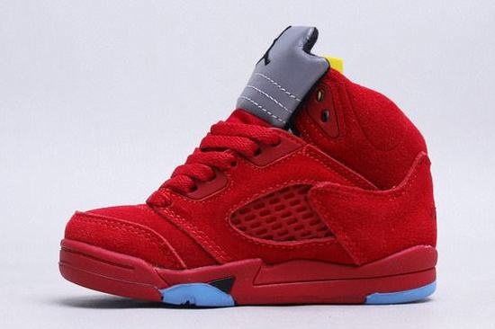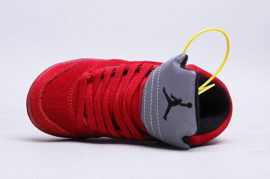 The Air Jordan 5 Retro Kids leather and synthetic vamp combines for a comfortable and durable upper, while the cushioned upper fits to enhance comfort. The herringbone primer outsole is paired with a curved groove for a strong grip and a free movement experience.