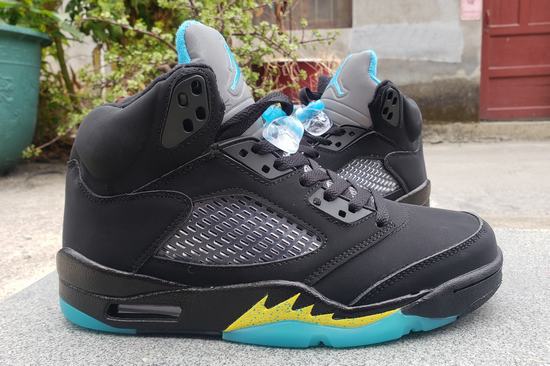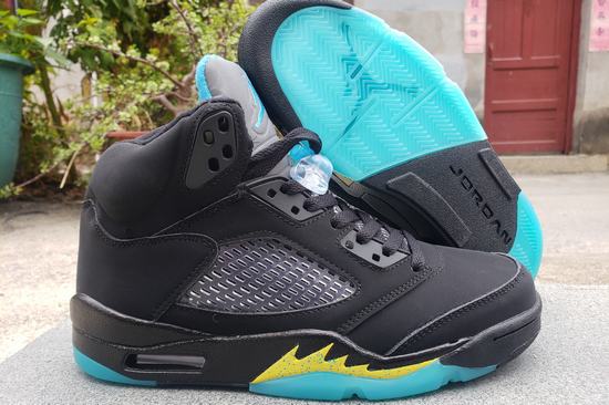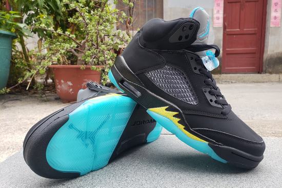 The Air Jordan 5 Aqua Retro upper continues its original black look with a large area of suede. The shoes are presented in black, terrazzo and taxi colors, with black matte leather upper, aqua tongue and yellow "shark teeth" on the midsole. The original yellow speckled shark teeth have also been retained in the midsole, cheap jordans for sale forming the team theme color of the New Orleans Hornets with the blue lake outsole. The outsole is also matched with the overall color of the shoes. The blue and black are spliced together, and the overall effect is versatile and retro fashion!