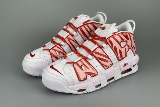 The Air More Uptempo, born in 1996, with its three letters on the side, explains the retro basketball culture and has become a favorite shoe for shoe fans. The whole pair of shoes are very simple, and the body is made of smooth leather and suede, which is very textured. The most eye-catching word AIR on the side is made of dark blue, which enriches the level of the shoe body. The huge Swooosh Logo on the toe cap is very eye-catching. The midsole uses the same color scheme as the shoe body to improve the design of the entire pair of shoes. Both the midsole and outsole are made of rubber to enhance the overall design style of the shoe. The bubble style Swoosh at the back of the heel greatly increases the consistency with the toe embroidery. The midsole adopts a window opening air Max air cushion in the back palm. The blue air column echoes with the blue Swoosh on the shoe body, and has good comfort.