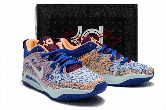 Zoom KD 15 vamp material texture continues KD14 multilayer mesh fabric, connected inside and outside the three-dimensional structure responsible for support locking. EASY print on heel pull, rubber outsole, with KD tongue Logo, and Paisley pattern on insole. KD jersey number 7 on the heel, special pattern Swoosh, full palm and front palm fan overlap Air cushion, outsole hollowed out also barely see Air Zoom air cushion texture, shoe tongue inner breathable hole, heel continuation KD14 striped structure with flannel shoe material.