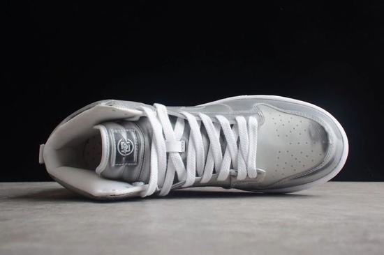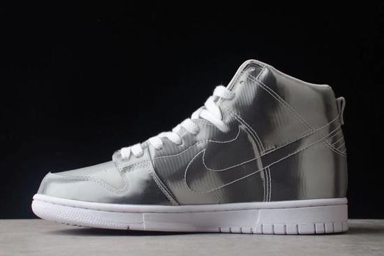 The upper of CLOT x Dunk High ICE is covered with metallic silver, and the metallic shape creates a strong sense of the future. The traditional tongue label is also made of flash card material, showing Dunk, CLOT and Logo from different angles. The detail design is quite novel, which highlights the joint identity. The color dunk high for cheap scheme of liquid silver is super handsome, very futuristic, and it is really much higher than the appearance in the picture. In addition to the new shoes this time, each pair will also have a mysterious blind box commemorative card! The whole body of the shoe is designed with liquid silver, and the effect on the upper foot is quite dazzling. How do you rate the appearance of this pair of shoes?