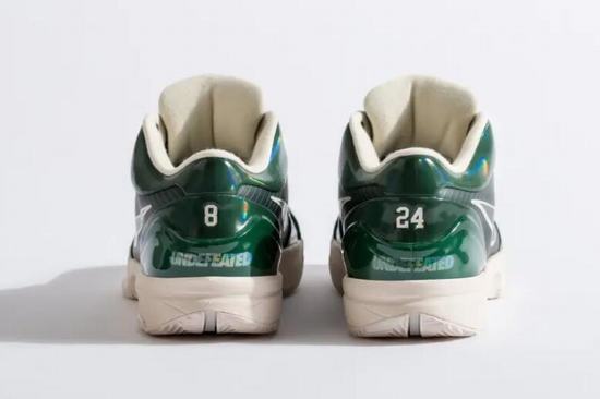Founded in 2002, the UNDEFEATED fashion store in Los Angeles has long made a name for itself. UNDEFEATED x Kobe 1 Protro after a happy collaboration. Kobe 4 Protro is available in four new colors inspired by the Lakers (Los Angeles Lakers), Suns (Phoenix SUNS), Spurs and Bucks (Milwaukee Bucks), Likely representing Bryant's team of demar derozan, Devin Booker, Kyle Kuzma and Janis Antokormpo. The design of the shoes was based on the lacquered leather that represented the colors of each team, and the "UNDEFEATED" Logo was added to the tongue. A new UNDEFEATED x Kobe 4 Protro "Dark Green" co-branded shoe will be available. The color scheme is still the UNDEFEATED signature army green, and the large area of patent leather material has greatly improved the texture of the shoes. The UNDEFEATED Logo was emblazoned on the tongue, along with Bryant's career numbers 8 and 24 in the heel detail, with the UNDEFEATED logo looming directly below.