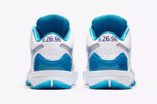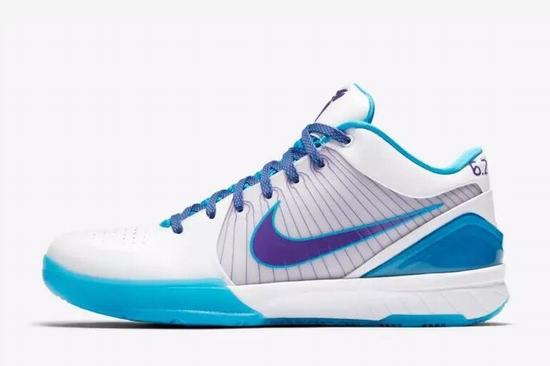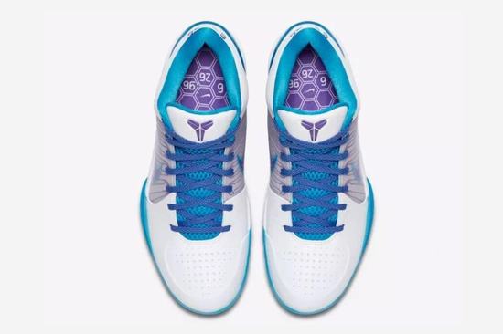 Zoom Kobe 4 Protro Draft Day shoe money to honor Bryant selected by the charlotte hornets on Draft Day, shoe body with the hornets the theme of the white and blue color is dressed up, shoes Bryant's personal Logo on the tongue and sideways Swoosh Logo with purple ornament, reveal the hornets theme! The numbers "6.26.96" and "24" on the heels represent the date Bryant was drafted by the Hornets and Bryant's No. 24 jersey, respectively! The insole also has a hexagonal texture and the same lettering. The whole shoe is white as the main color, purple is used in the Logo ornament, blue is used in the middle sole and heel Tpu, making the whole pair of shoes full of movement. Midsole front Lunarlite foam + Heel Zoom Air becomes full Zoom Air cushion. In addition to switching to the full Zoom Air cushion, some minor tweaks have been made to the vamp, the heel curve has been optimized, and the outsole has been widened.