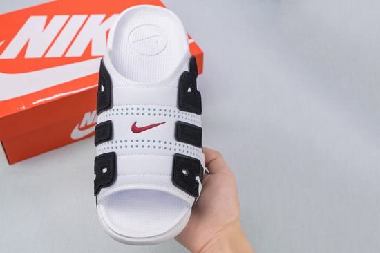 The Air More Uptempo 96 Slide features a graffiti culture that is popular on the streets, with a thick and textured leather upper. The style is exaggerated and charming, with a stunning appearance and a pair of large letters AIR engraved on both sides. The Air More Uptempo Slide is an obvious subversion of Scottie Pippen's iconic shoe in 1996, which is as amazing as its parent. The Air More Uptempo 96 Slide has a very iconic exterior profile and highly expressive line design. The 'Big Air' series is a classic basketball shoe series that is well-known to many shoe enthusiasts. After more than a decade of color changes and material upgrades, it has now become a unique retro trendy shoe. The new Air More Uptempo 96 Slide continues to feature a minimalist color scheme in its design, and is presented with a large "AIR" embossed on the consistent side positions. In addition to the Swoosh in the details, the visible AIR cushioning system enhances the overall functionality and design. Overall, the color scheme of these shoes is very fresh, and the material selection and matching are very advanced. The upper foot effect is also very good, it is a pair of eye-catching and eye-catching versatile shoes.