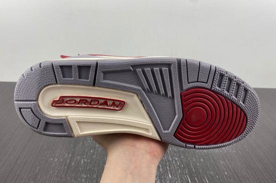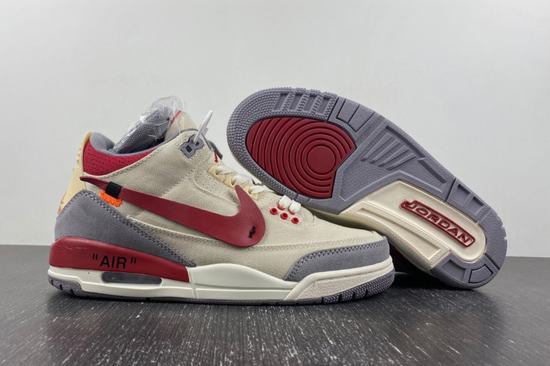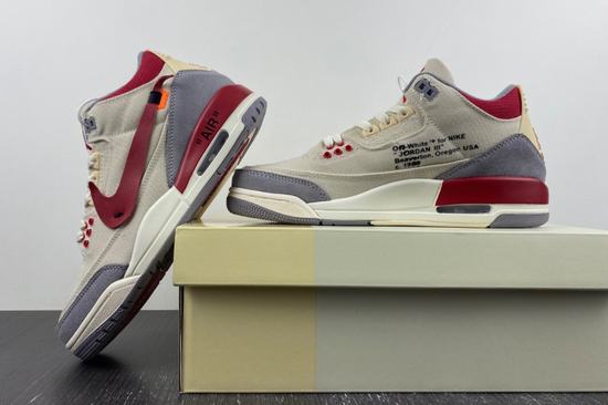 Air Jordan 3 Fear x Off White beige and red basketball shoes DH7139-123. Air Logo, white leather with crack. The first layer skin, lychee grain, crack, shoe tongue flying embroidery.
