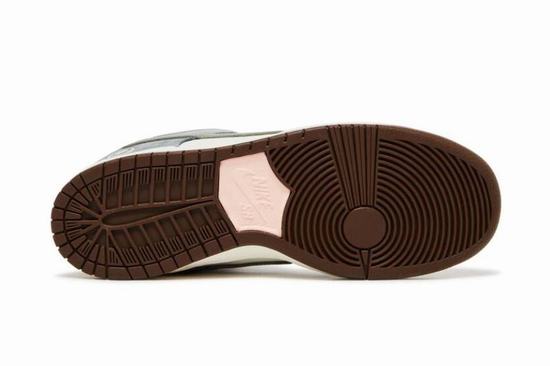 With the name of the Japanese skateboard prince, Yuto Horigome (Yuto Horigome), with the Tokyo Olympic Games to win the first gold medal of the project glory, the popularity of his, the peripheral effect is fermented in the world, in addition to the same jersey quickly sold out, but also further cooperate with the sponsor Dunk SB, Designed exclusively for their own special version of SB Dunk Low co-branded. Yuto Horigome teamed up with Dunk Low SB to showcase the Japanese pro skateboarder's interpretation of the timeless silhouette. The white leather upper is reinforced with a grey suede covering on the front foot and heel. The cross feather pattern on the transverse heel is accompanied by a distinctive grey leather Swoosh, while Horigome's name appears on the Dunk SB tongue tag. The pink suede back label is marked with Nike text, contrasted with the brown suede low cut pad collar. Underfoot, a sturdy white sidewall cup bottom rides on a grip-brown rubber outsole.