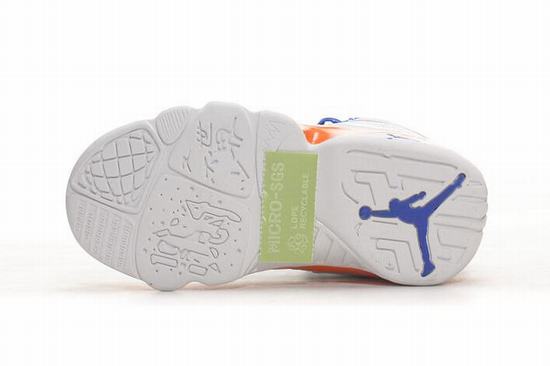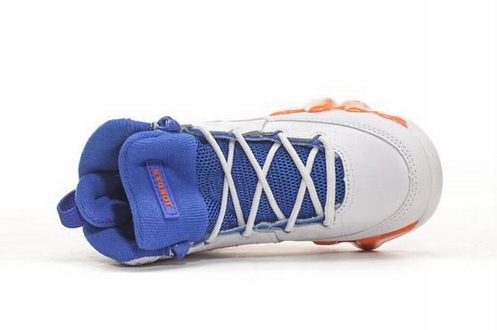 The Air Jordan 9 Retro Kids sole features multiple national language texts and Earth patterns, and the Jumpman logo on the heel is presented with Earth patterns, indicating that Jordan has become a world-class basketball superstar and continues the use of inner boots. For the first time, a fast lacing system has been added, making it more convenient to wear and take off. Sawtooth shaped materials are added on the side to maintain stability and enhance roll over prevention. The midsole still uses a front and rear sole separation air sole.