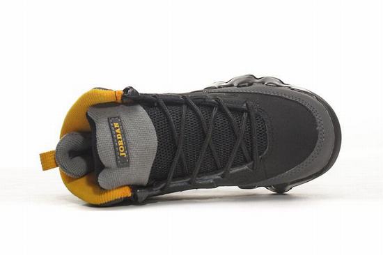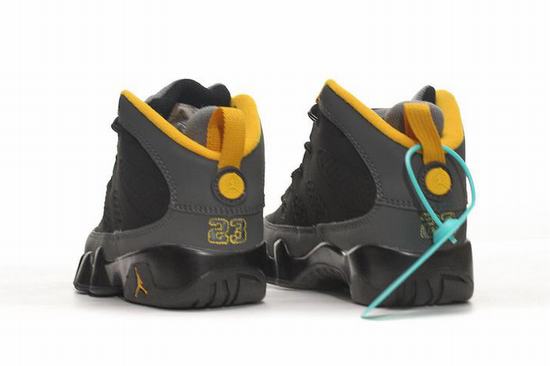 The Air Jordan 9 Retro Kids sole features multiple national language texts and Earth patterns, and the Jumpman logo on the heel is presented with Earth patterns, indicating that Jordan has become a world-class basketball superstar and continues the use of inner boots. For the first time, a fast lacing system has been added, making it more convenient to wear and take off. Sawtooth shaped materials are added on the side to maintain stability and enhance roll over prevention. The midsole still uses a front and rear sole separation air sole.
