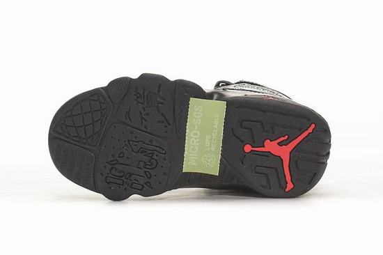 The Air Jordan 9 Retro Kids sole features multiple national language texts and Earth patterns, and the Jumpman logo on the heel is presented with Earth patterns, indicating that Jordan has become a world-class basketball superstar and continues the use of inner boots. For the first time, a fast lacing system has been added, making it more convenient to wear and take off. Sawtooth shaped materials are added on the side to maintain stability and enhance roll over prevention. The midsole still uses a front and rear sole separation air sole.