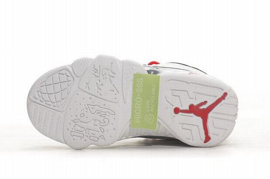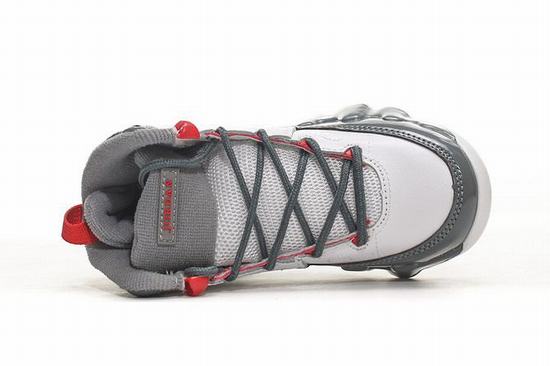 The Air Jordan 9 Retro Kids sole features multiple national language texts and Earth patterns, and the Jumpman logo on the heel is presented with Earth patterns, indicating that Jordan has become a world-class basketball superstar and continues the use of inner boots. For the first time, a fast lacing system has been added, making it more convenient to wear and take off. Sawtooth shaped materials are added on the side to maintain stability and enhance roll over prevention. The midsole still uses a front and rear sole separation air sole.
