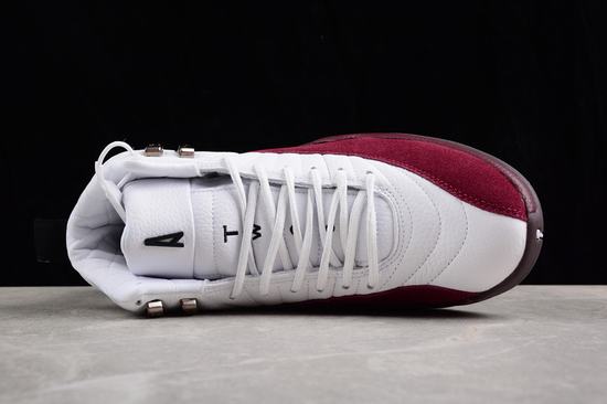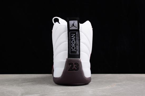 The classic styling elements of the Air Jordan 12 seamlessly integrate with A Ma Maniére's co-branded accents. The combination of white leather and burgundy suede enhances the overall tactile and visual experience, emanating opulence. This pairing of white and wine red, composed of leather and suede, beautifully captures A Ma Maniére's expertise in luxury design, resulting in a truly handsome aesthetic.