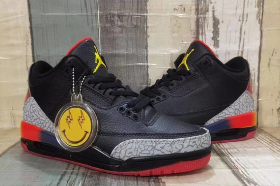 The entire pair of J Balvin x Air Jordan 3 shoes is embellished with a large area of old black and burst patterns, and is paired with a rainbow design on the heel to enhance the overall appearance. The upper is wrapped in high-quality pebbled leather to ensure the quality of the shoe. The main body of the shoe is made of high-quality pebbled leather, and is mainly black with large areas of distressed craftsmanship and classic burst pattern embellishments, making it instantly recognizable! The heel of the shoe is even more heavyweight, mainly using the gradient color of the sunset. The Jumpman Logo on the left foot is changed to J Balvin's "Lightning Smiley", and the "I" of the AIR word is replaced with a lightning pattern. Finally, in addition to the appearance of the cheap jordan shoes In addition, the design of the insoles and shoe boxes still have high standards, and the shoe boxes are also very delicate. The box surface adopts J Balvin’s iconic lightning smiley face design, which looks particularly exquisite and conspicuous from the inside to the outside. The unique gradient sunset effect coupled with J Balvin’s distinctive “Lightning Smiley Logo” is unforgettable. In addition to the appearance of the shoes, the insoles and shoe boxes also have high-standard special designs. The insole has an asymmetric design on the left and right, and is printed with a sunset pattern to echo the theme of the shoe. The specially designed shoe box is also beautiful, with J Balvin’s iconic smiley logo particularly prominent.